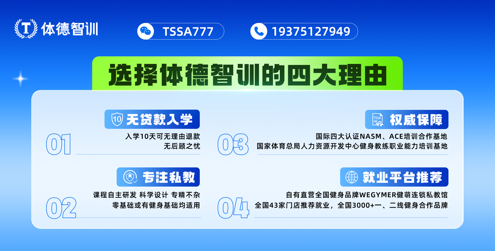 体德智训健身研究院(长沙校区)地址:湖南省长沙市芙蓉区隆平高科技园高家坡977号 ******************************************************************* 体德智训健身研究院(南京校区)地址:江苏省南京市浦口区江北新区人力资源服务产业园04栋L5 ******************************************************************* 体德智训健身研究院(广州校区)地址:番禺区石楼镇创启路63号创新一号楼D4、D5单元